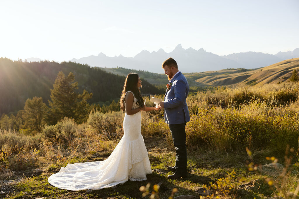 Gabi and Micah dreamed up a beautiful wedding day in the Tetons that was topped off with an intimate reception back at their rental house. They were staying in a gorgeous rental in Driggs, Idaho. While staying in Driggs or Victor can add extra driving to your day, the value you get for the size of the houses is much better than in Jackson itself!